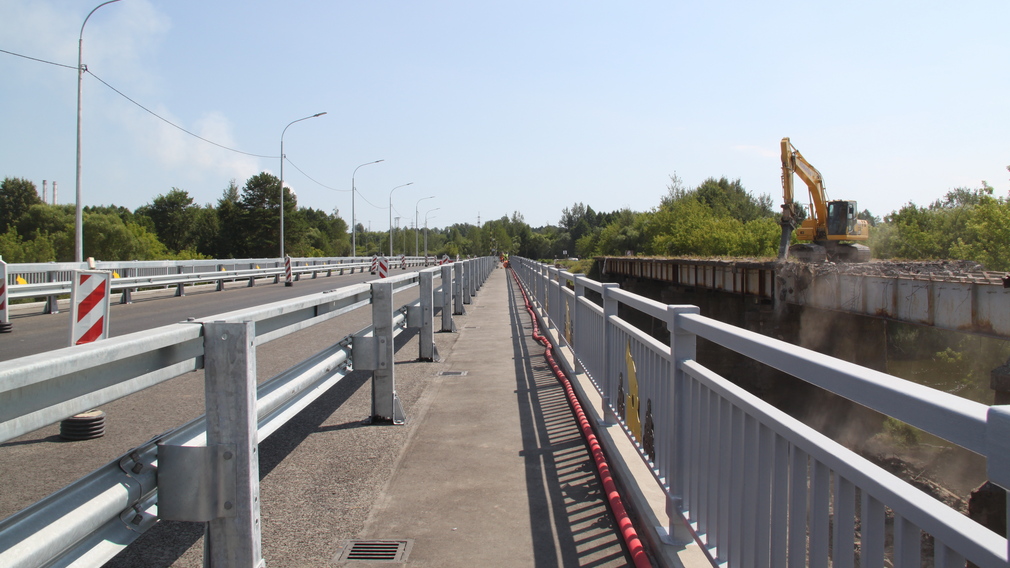 Специалисты подрядной организации завершают работы на новом мосту и начали демонтаж старого. На его месте построят две защитные дамбы.