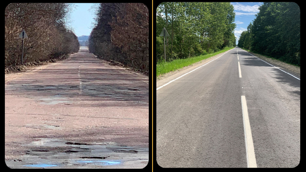 Дорогу обновили на участке протяженностью в два километра. Специалисты произвели замену асфальтобетонного покрытия и укрепили обочины. Отремонтировали остановочные и посадочные площадки, водопропускную трубу, также нанесли дорожную разметку и установили новые дорожные знаки.