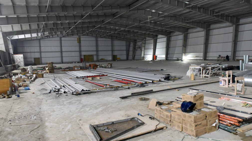 Строительные работы практически завершены: штукатурка, заливка чаши арены, котельная и холодильное оборудование, электрическая сеть, отопление, водопровод, канализация. Впереди благоустройство: посадка деревьев, укладка плитки и асфальта, парковка, пишет РИА «Стрела».