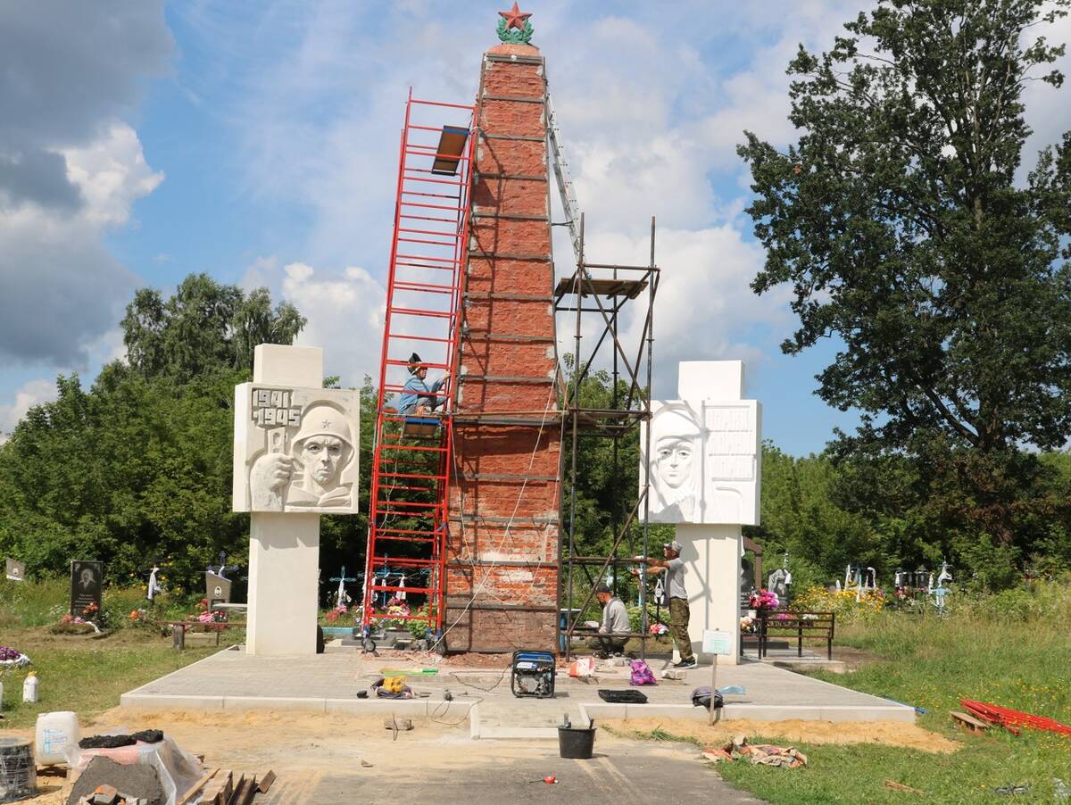 Бригада строители (ИП Е. Н. Галбура) реконструировала две из трёх стел мемориала. На третьей, центральной, смонтирован металлический каркас. На нем закрепят облицовочные плиты и установят списки павших воинов. Благоустраивается и прилегающая территория: уложена тротуарная плитка, установлены бордюры. Работы идут в рамках программы «Инициативное бюджетирование», пишет «Брянск Today».