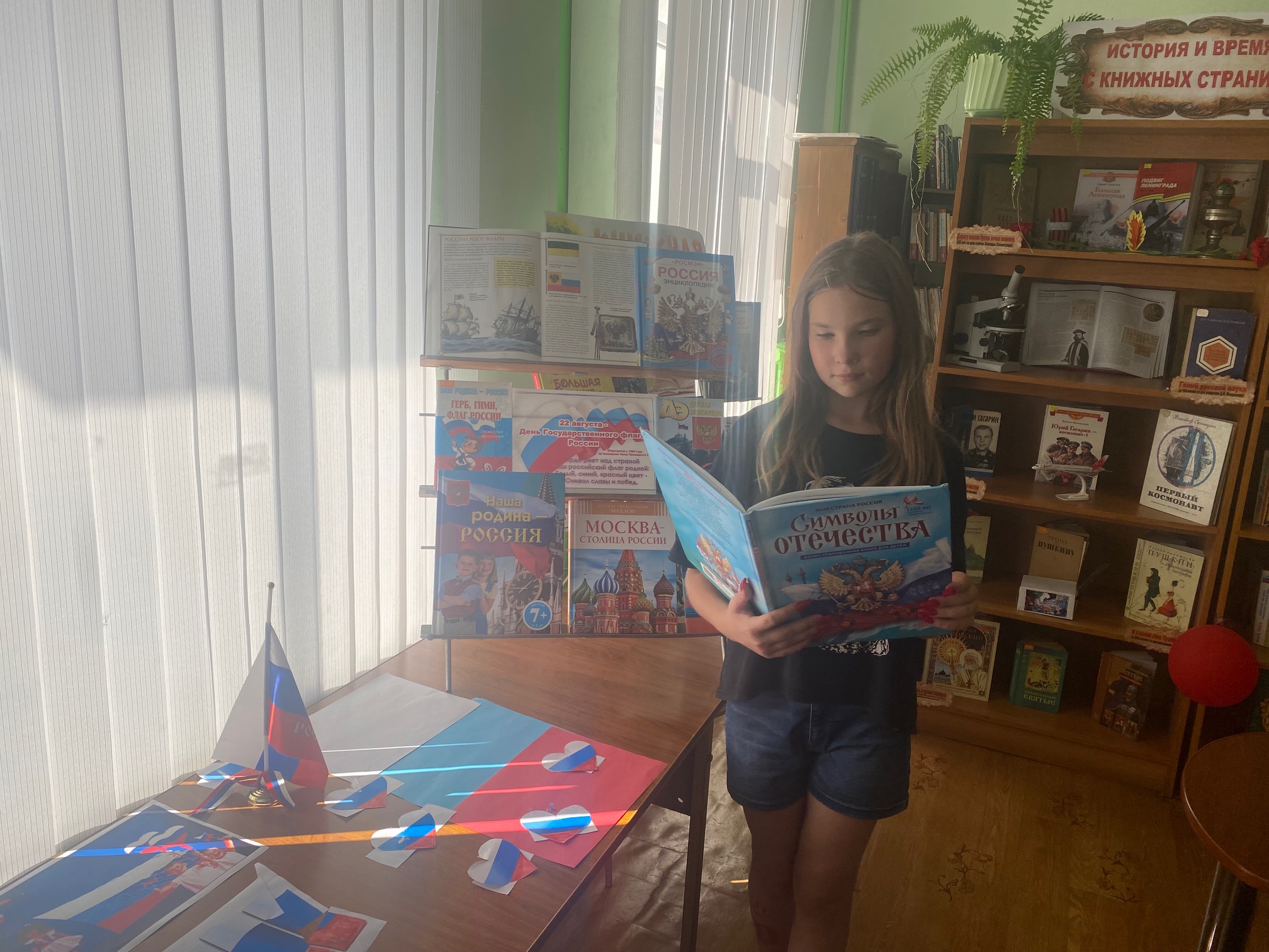 Любознательные читатели знакомились с книгами у выставки, поэтическими произведениями, посвященными государственному флагу РФ, и воочию прикоснулись к уменьшенной копии флага России.