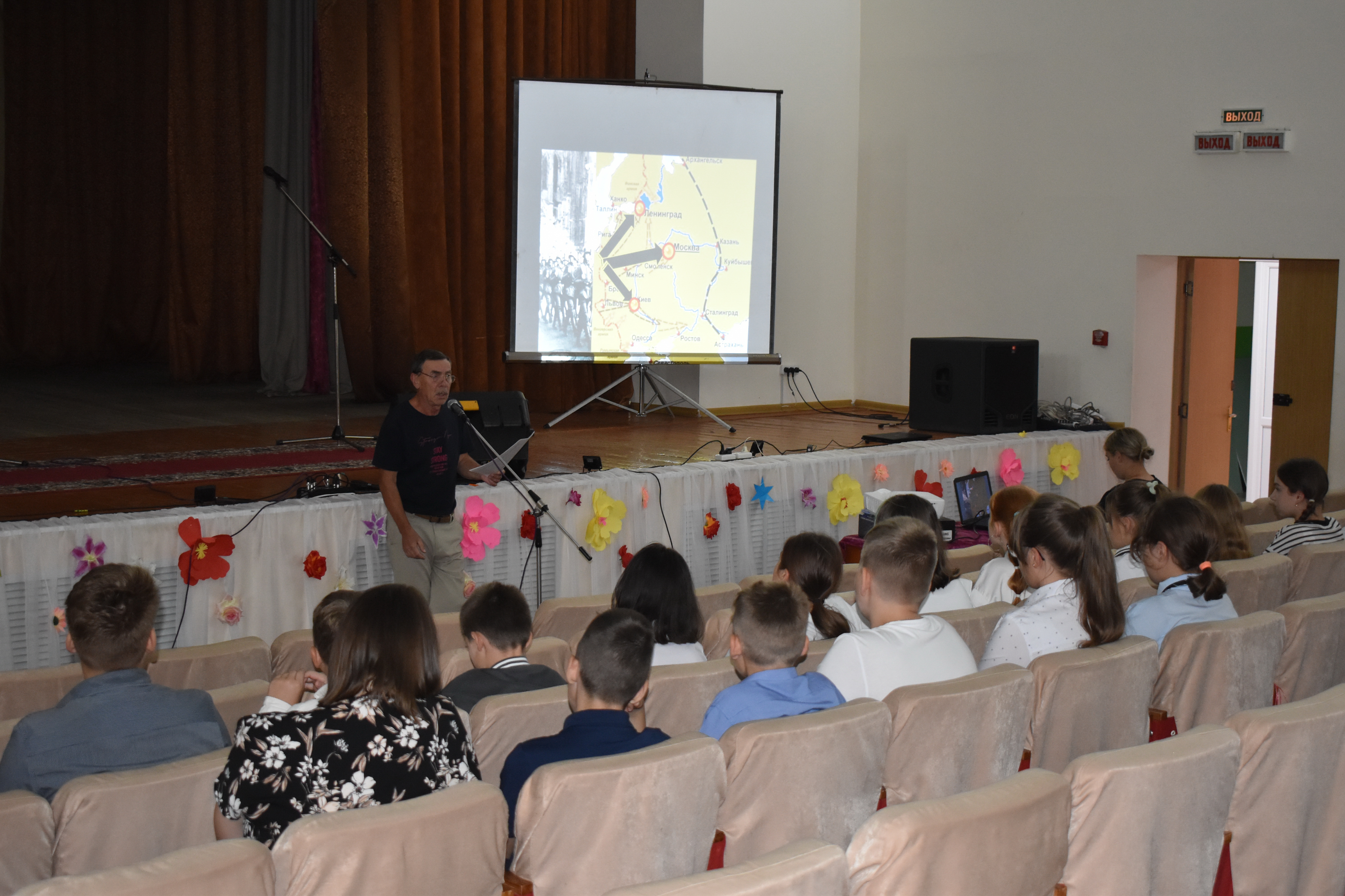 Было отмечено, что окончание Второй мировой войны стало великим событие для всего мира. Именно в этот день был побежден нацизм и фашизм, прекращено преступление против всего человечества. Сергей Михайлович подчеркнул, что ключевую роль в этой победе сыграл Советский Союз и его храбрые воины, сражавшиеся не только за свою Родину. Советские солдаты гнали врага до самого Берлина, изгоняя его с территорий других государств, захваченных нацистской Германией и ее союзниками. Блестяще проведенная Маньчжурская операция стала завершающей битвой этой войны, после которой последний союзник нацистской Германии – милитаристская Япония была вынуждена капитулировать. 2 сентября Япония подписала Акт о безоговорочной капитуляции, а 3 сентября Советский Союз праздновал Великую победу. Также С.М. Хомяков коротко рассказал ребятам о том, для чего в 1949 году был создан блок НАТО, о цветных революциях и войнах в Афганистане, Чечне, Югославии, Грузии и нынешней специальной военной операции на Украине.