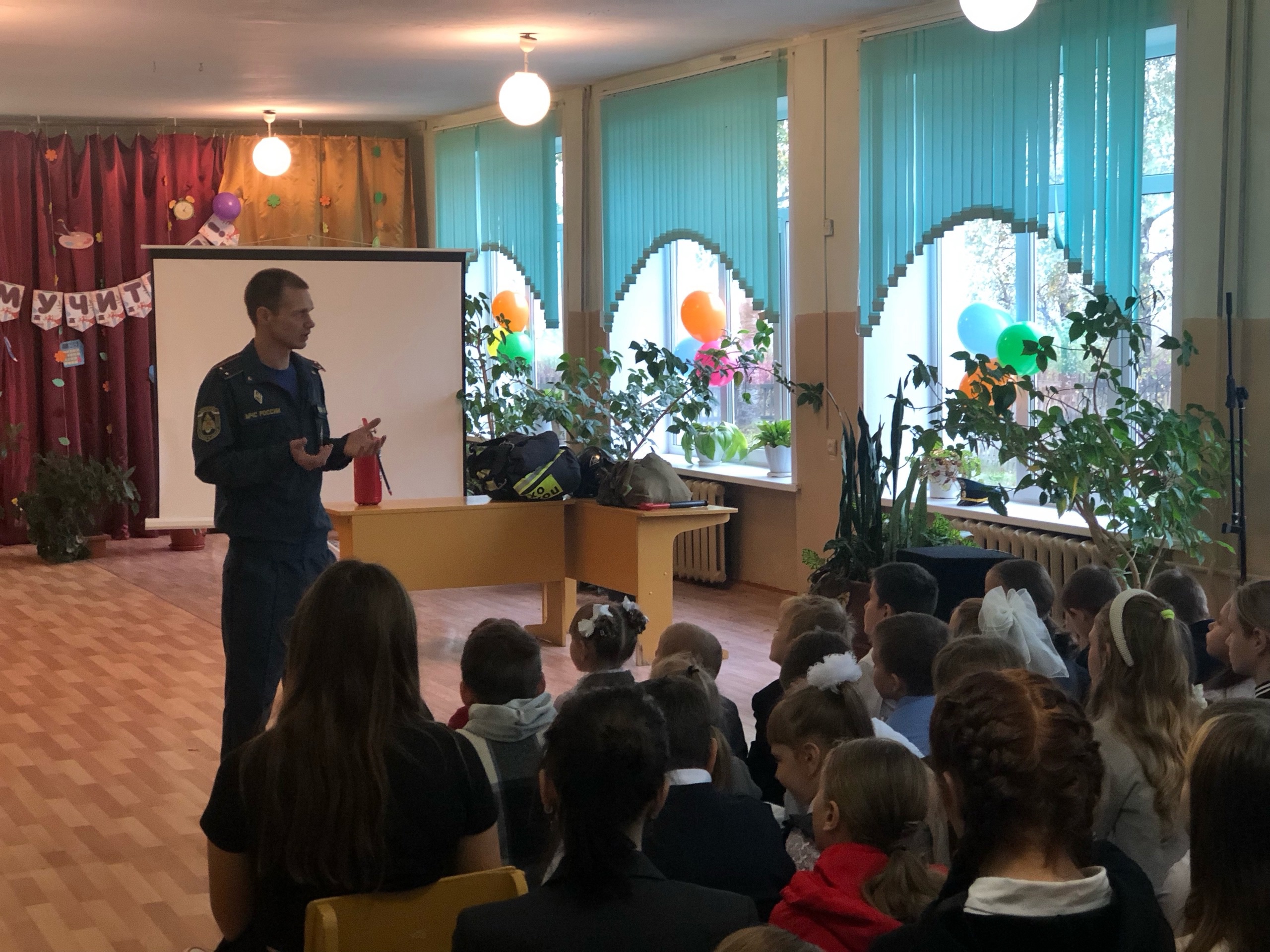 В Душатинской школе Суражского района состоялся Всероссийский урок, посвящённый Дню Гражданской обороны РФ. В рамках этого мероприятия в гости к школьникам пришел Александр Валерьевич Прохоренко — сотрудник МЧС.