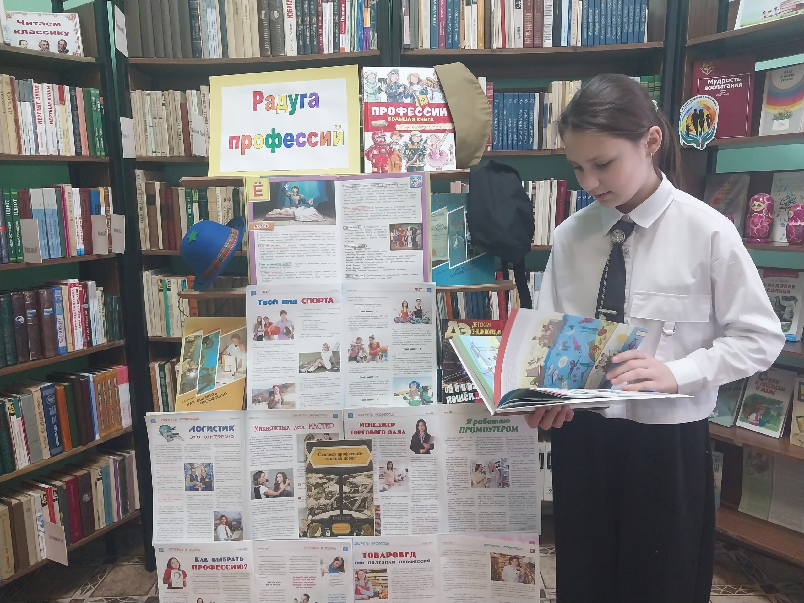 Вниманию читателей была представлена выставка-просмотр, где библиотекарь познакомил школьников с научно-популярными, энциклопедическими изданиями о выборе профессии, статьями из детских журналов о современных профессиях, таких как : логист, веб-мастер, промоутер и др. Ярким атрибутом выставки стали головные уборы работников некоторых профессий которые захотели примерить и юные посетители.