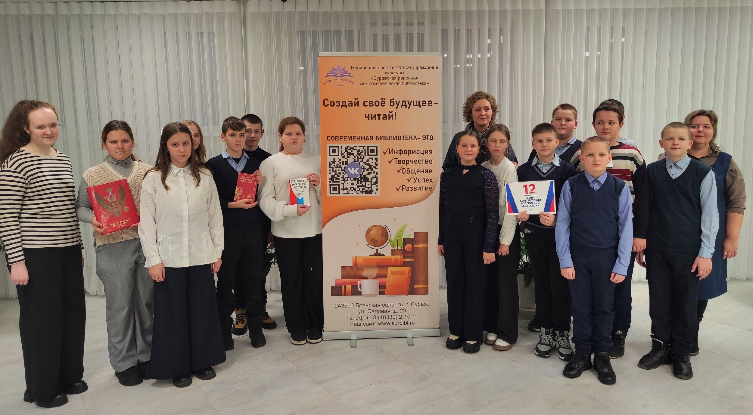 12 декабря наша страна отмечает один из важнейших государственных праздников — День Конституции Российской Федерации. В честь этого события работники Суражской районной библиотеки провели для обучающихся средней школы №3 мероприятие, посвящённое патриотическому воспитанию, под названием «Главный закон страны».