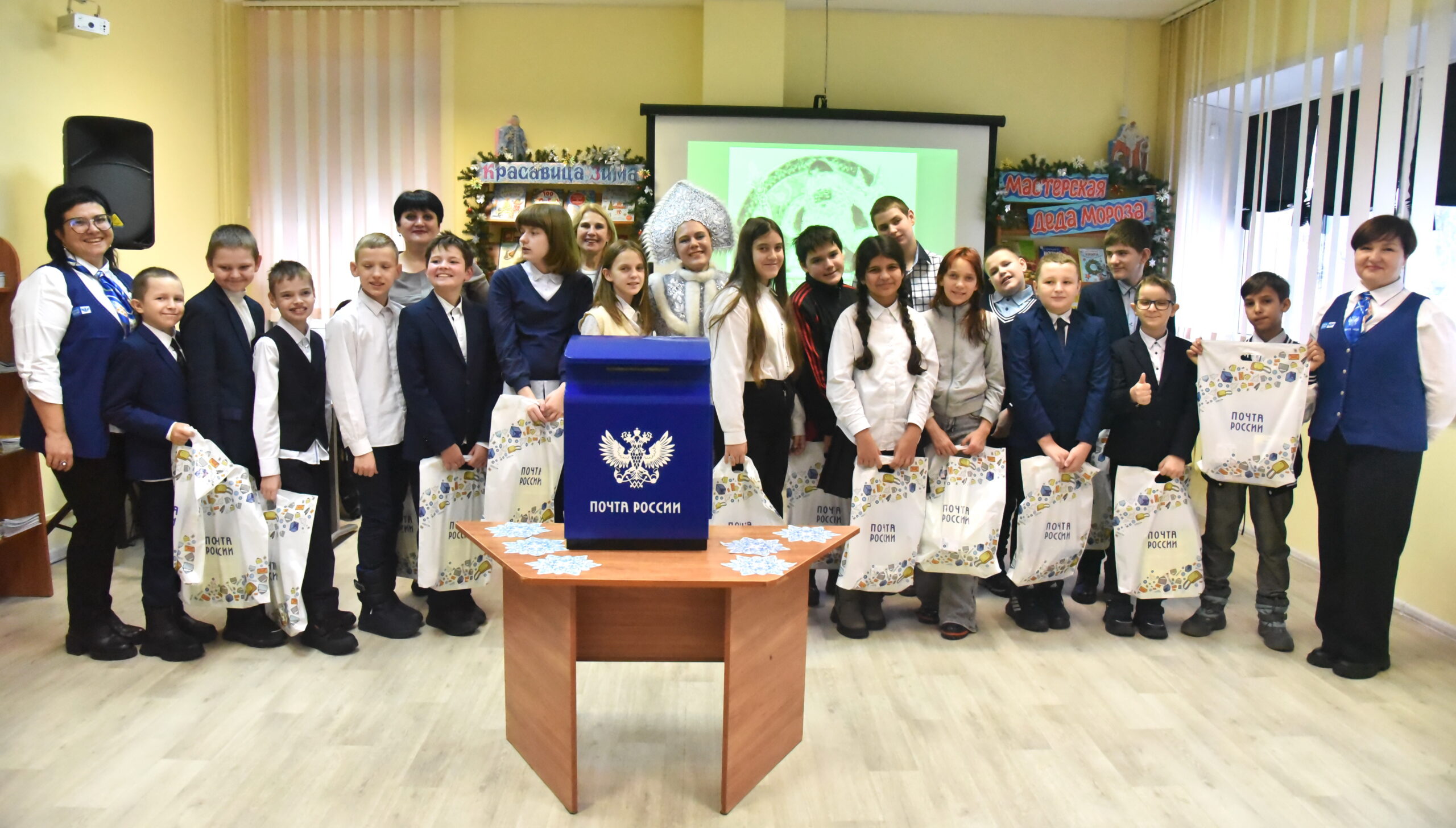 На праздничном мероприятии работало выездное почтовое отделение. Сотрудники Почты России Бродникова Галина Львовна и Грибанова Елена Ивановна помогли ребята по всем правилам оформить открытку, поставить оттиск новогоднего штемпеля на марку и опустить её в специальный почтовый ящик. Все детские послания отправились в официальную резиденцию Деда Мороза – город Великий Устюг. За новогодние поздравления для Дедушки Мороза дети получили заслуженные награды – подарки от Почты России.