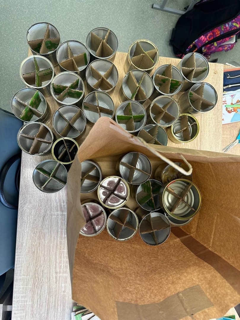 Это Доброе дело объединило многих людей, каждый участник внёс свой вклад в это благородное дело: собирали банки, картон и изготавливали из собранного материала заготовки окопных свечей.