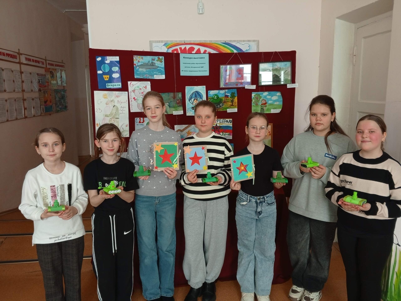 Обучающиеся детских объединений «Мир фоамирана» (рук. Иванченко О. В.) и «Юный художник» (рук. Калуга Е. Н.) постарались и изготовили открытки и объемные работы «Танки», нарисовали рисунки.
