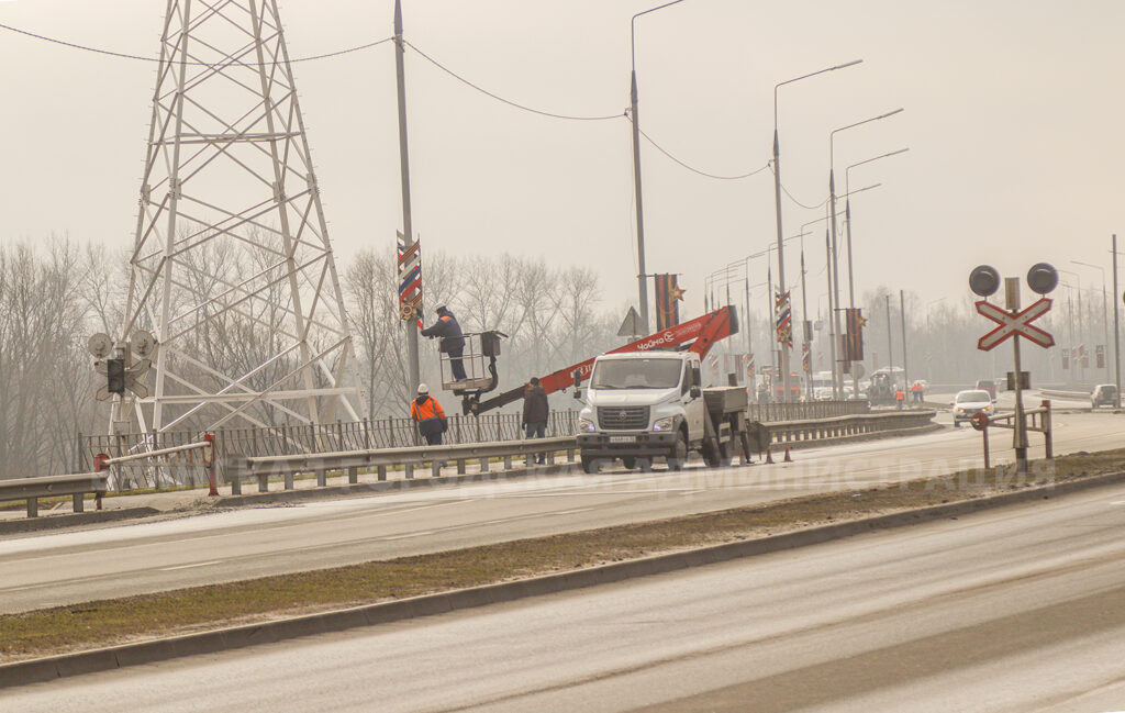 В Брянске на проспекте Героев продолжается ремонт торжественных инсталляций. Зимней непогодой оказались повреждены элементы консолей. Сейчас сотрудники городского управления дорожного хозяйства занимаются их заменой.