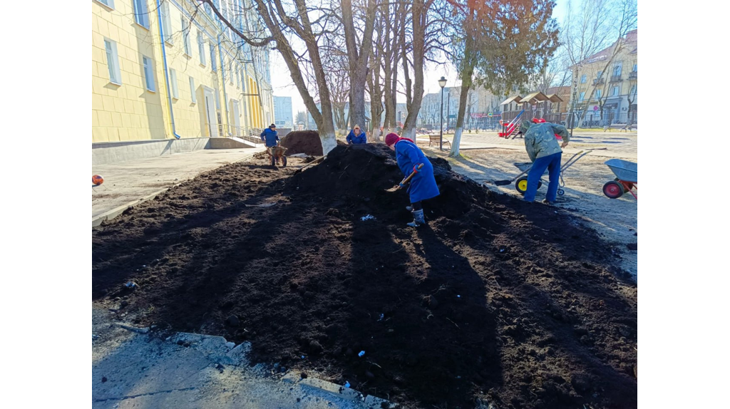 Собравшиеся убирали территорию возле ДК железнодорожников, завезли несколько кубометров чернозёма, чтобы вскоре расцвели благоухающие растения.