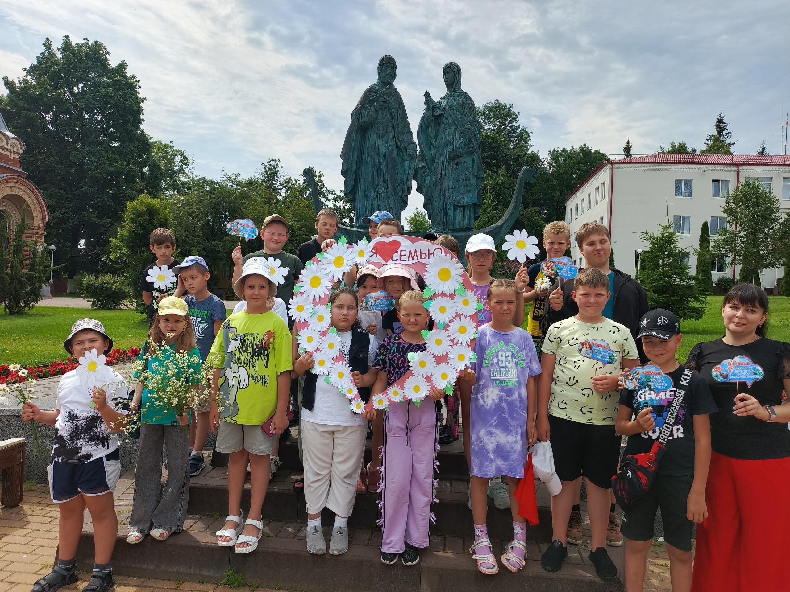 В этот день — столь важного, безгранично теплого и нежного праздника сотрудники муниципального бюджетного учреждения культуры «Суражская районная межпоселенческая библиотека» провели экскурсию к памятнику Петра и Февронии для ребят из летнего лагеря средней школы № 3 г. Суража.