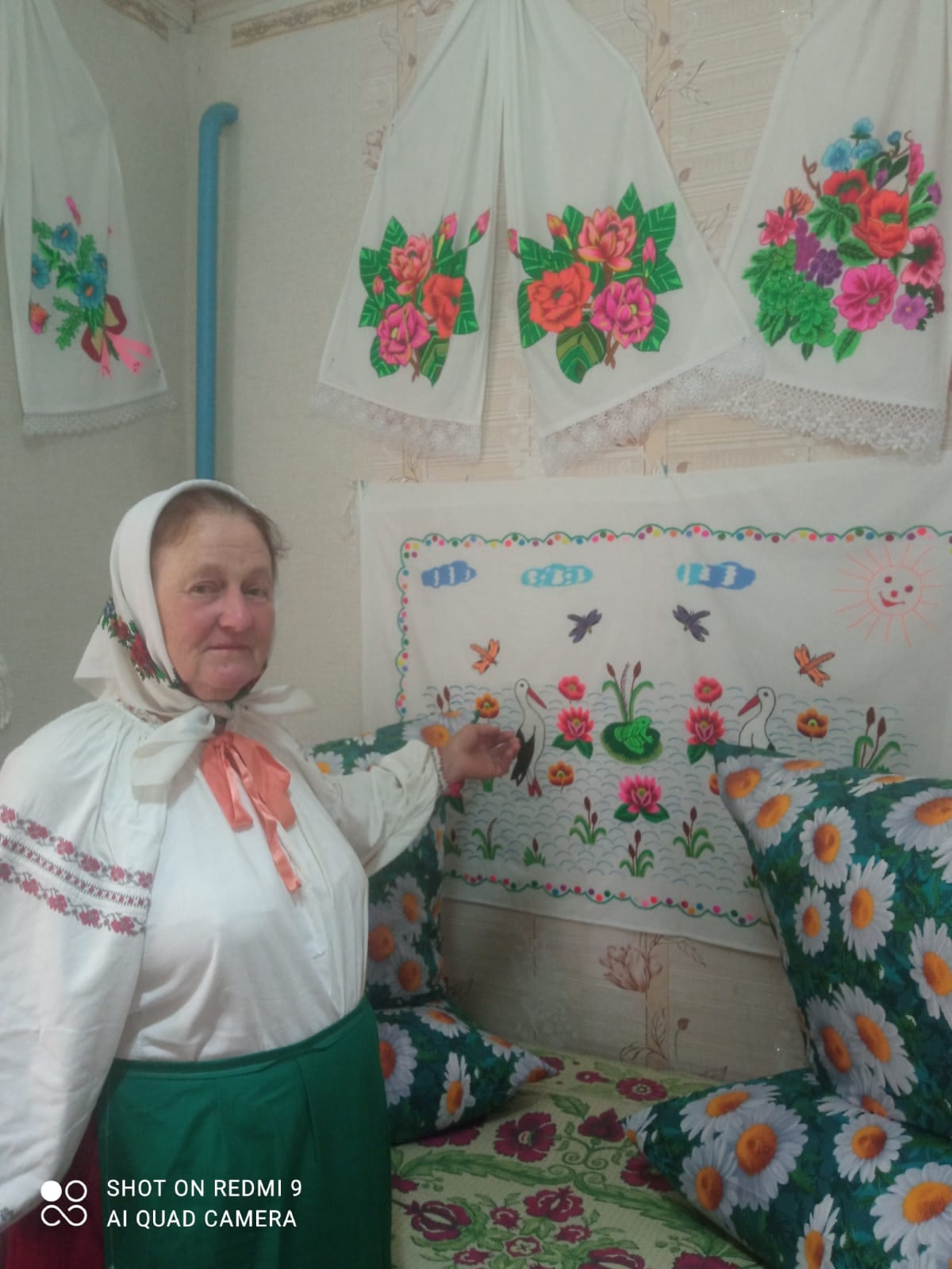 В этот праздничный день ребята вместе с библиотекарем не только вспомнили и прочитали русские народные сказки, загадки, пословицы и поговорки, считалочки и частушки, но и побывали в гостях у талантливой местной мастерицы и певуньи Валентины Васильевны Лагутенко. Она познакомила всех присутствующих со своими работами, наполненными яркими и интересными сюжетами вышивки: рушниками, вышитыми наволочками и скатертями, картинами алмазной мозаики, ажурными салфетками, плетеными ковриками. А ещё в исполнении Валентины Васильевны всем понравились народные частушки и песни, которые исполняли в селе Далисичи.