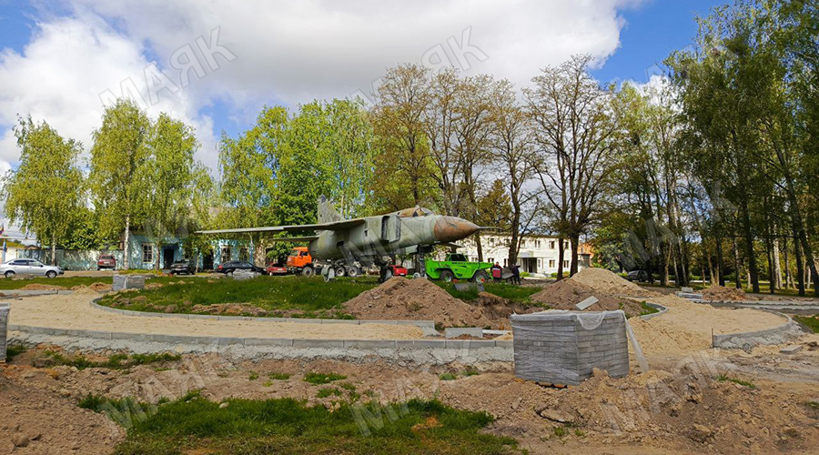 Как информирует издание «Маяк 32» в Новозыбковском городском округе идут работы по благоустройству сквера с планером-самолетом МИГ-23 МЛД. Помимо укладки тротуарной плитки, подрядчик установит фонари, скамейки и урны. После укладки тротуарной плитки рабочие планирую приступить к покраске фюзеляжа планера-самолет МИГ-23 МЛД. А после озеленения территории на свое место вернется и памятная табличка «Славным сынам Отечества, охранявшим небо Новозыбкова в мирное и военное время от благодарных потомков».
