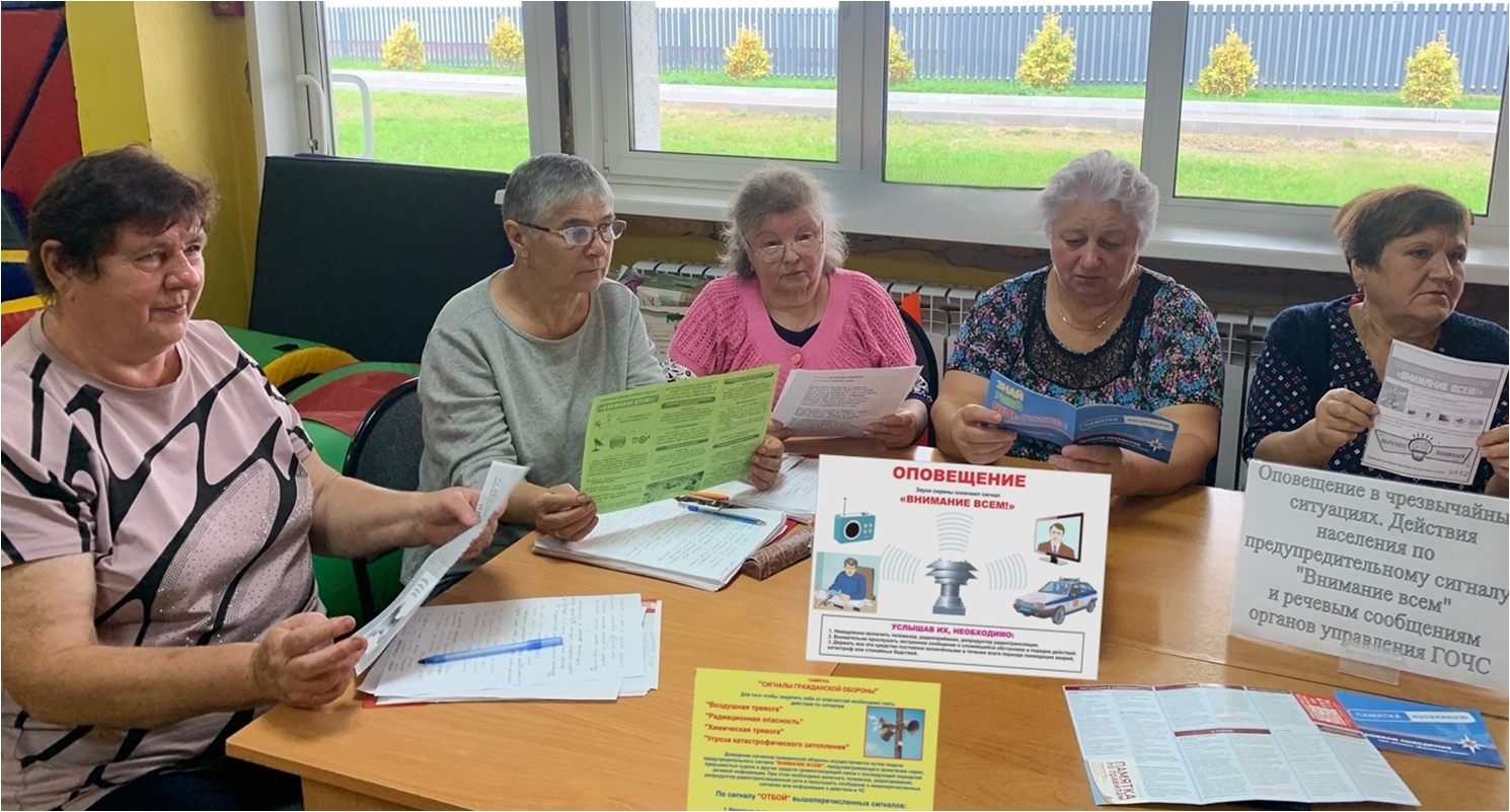 В Суражской районной библиотеке открыт пункт по гражданской обороне для обучения неработающего населения. Сегодня прошло занятие для пенсионеров по теме оповещения в ЧС и действиям по сигналу «Внимание всем!». Гражданам рассказали о воздушной, химической тревоге и радиационной опасности, а также о важности взаимопомощи. Проведен инструктаж по действиям при получении сигнала. Слушатели получили памятки с правилами поведения и номерами экстренных служб.