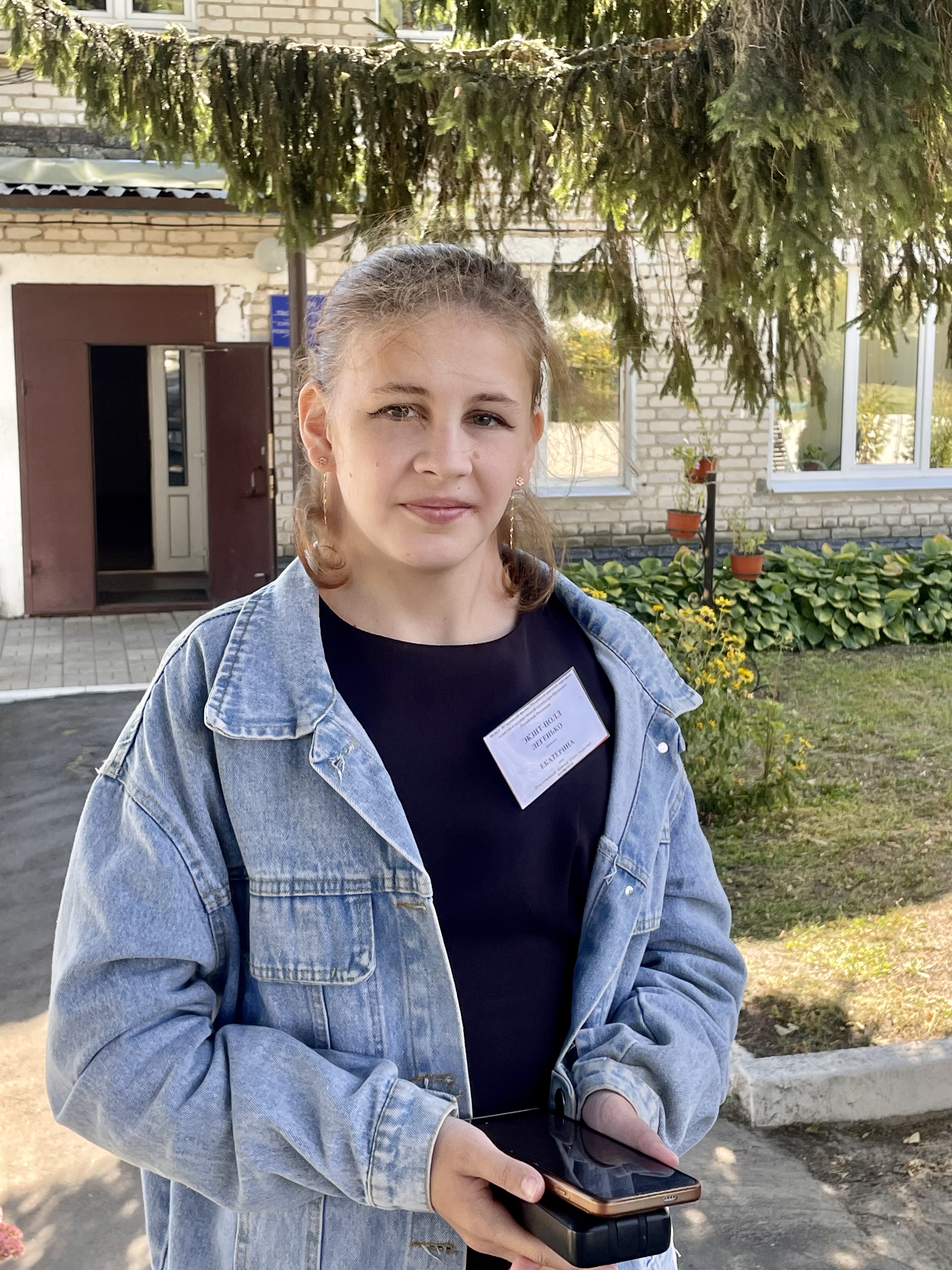 На выходе одного из избирательных участков в Сураже проводит опрос общественного мнения (экзит- полл) Екатерина Легенько. Диалог Екатерина ведет только с проголосовавшими избирателями.