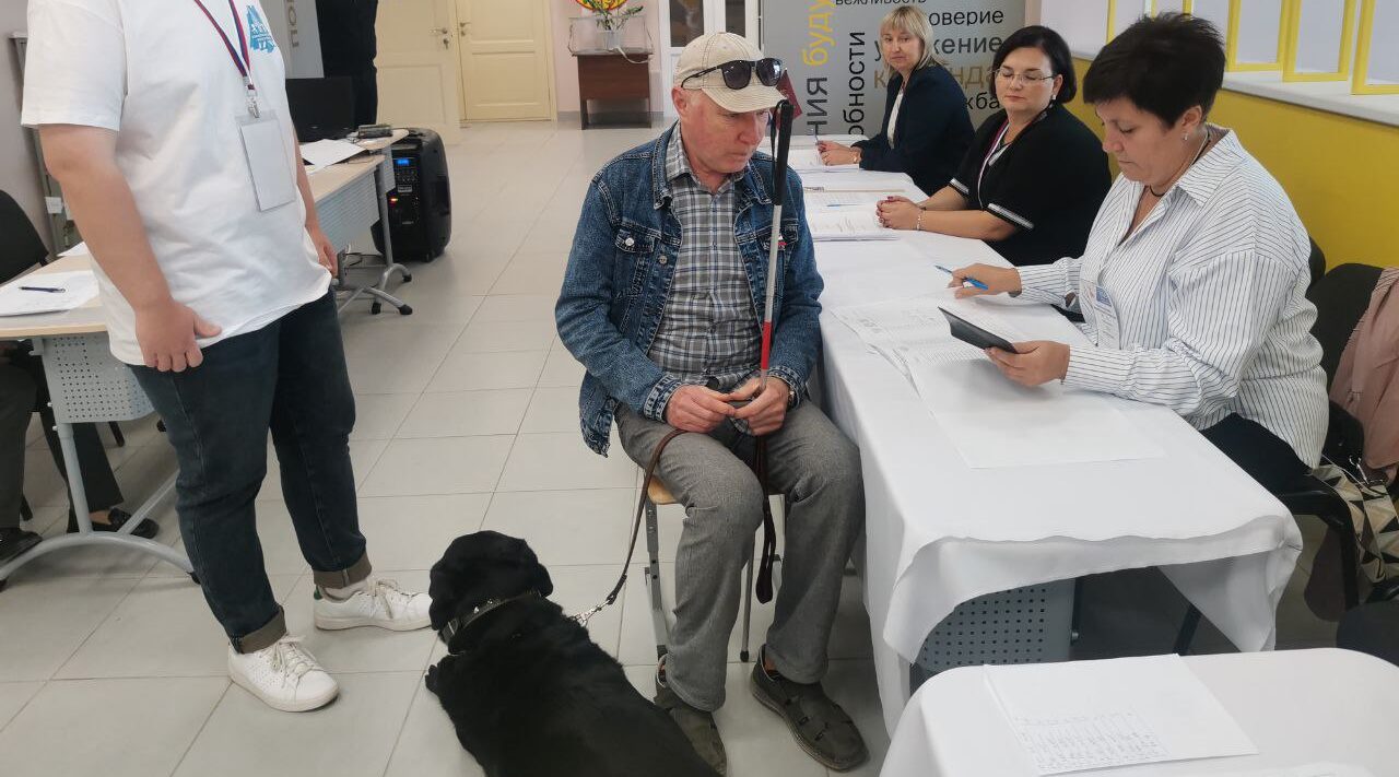 Как информирует издание «Деснянская правда» второй день голосования на одном из участков в Бежицком районе Брянска начался так же, как и в пятницу, 12 сентября 2025 года. С утра у кабин для голосования образовалась даже небольшая очередь. Владимир Долбусин с собакой-поводырем по кличке Форд пришел на участок, когда волна схлынула.