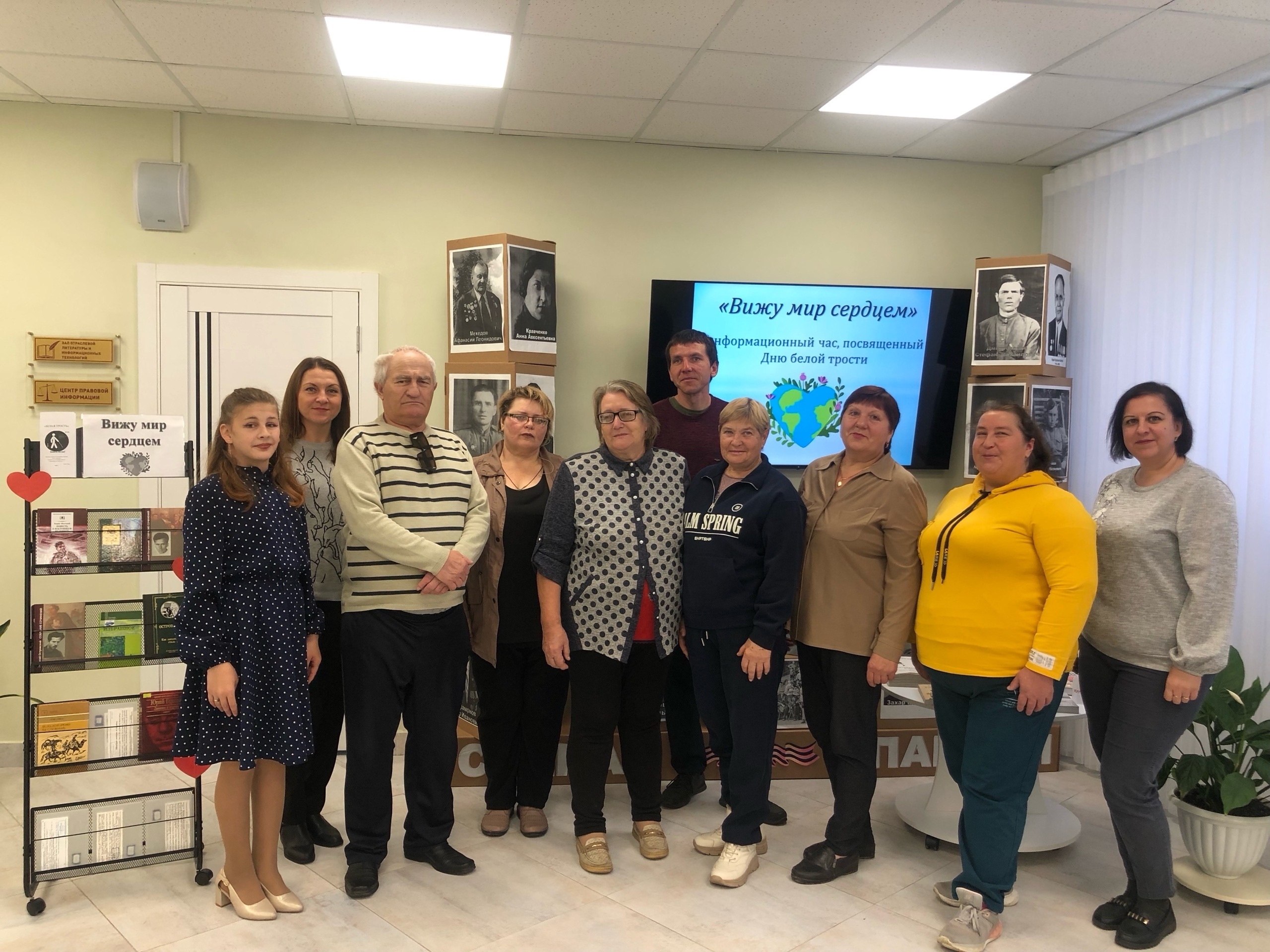 8 октября в рамках Международного дня белой трости в муниципальном бюджетном учреждении культуры «Суражская районная межпоселенческая библиотека» прошёл тематический вечер «Вижу мир сердцем», для участников клуба Всероссийского общества слепых «Поговорим по душам», который работает уже на протяжении многих лет. И востребован до настоящего времени.