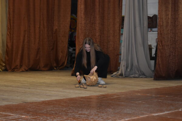 Затем школьники приняли участие в конкурсах: «Загадки», «Яблочко, держись», «Пройти под шалью», «Собери картошку». Юноши и девушки активно играли, и желающих посоревноваться было много.