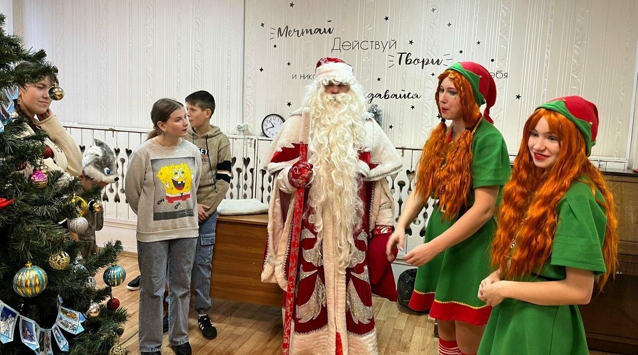 В гости к девчонкам и мальчишкам пришли озорные Эльфы (Морозова Е.В. заведующая отделом обслуживания МБУК «Суражская городская детская библиотека» и Ходарина Екатерина учащаяся 9 «А» класса МБОУ СОШ №3), у которых случилась беда, не работает телефон, а значит Новый год под угрозой. Ребята вместе с Эльфами выполняли задания, чтобы спасти праздник, участвовали в музыкальных играх, пели, танцевали. Кульминационным моментом стало появление Деда Мороза (Товпеко Д.А.), который собрал всех в дружный хоровод, поздравил с наступающими праздниками и вручил сладкие призы.