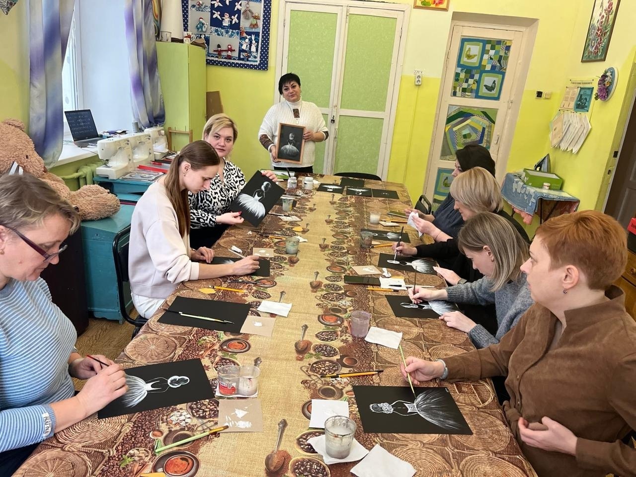 Семинар завершился мастер-классом «Монохромный рисунок сухой кистью «Балерина», который провела педагог дополнительного образования С.А. Сандлер. Участники мероприятия познакомились с особенностями рисования одним цветом, изменяя влажность кисти и насыщенность белого цвета на чёрном фоне. В результате все участники мастер-класса не только нарисовали портрет балерины, но и получили массу положительных эмоций в процессе творчества.
