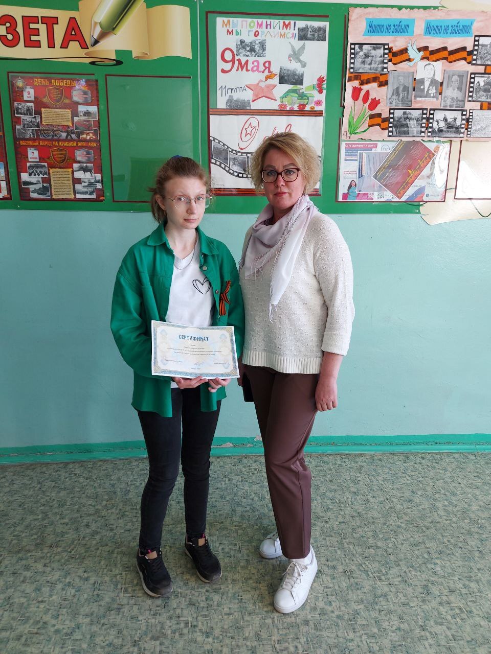 В олимпиаде по истории, посвященной 80-летию Великой Победы, приняли участие 27 первокурсников из всех образовательных организаций СПО региона. Среди них обучающаяся Суражского промышленно-аграрного техникума Альбина Курбанова, наставник Ольга Александровна Даниленко.